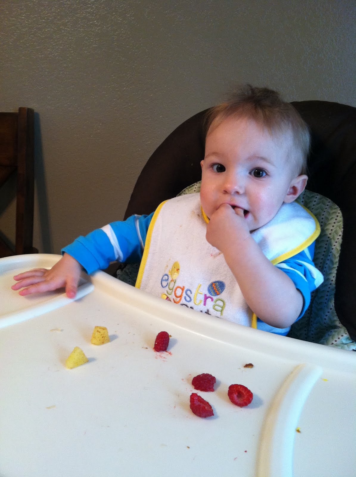 This picture really doesn't show it, but I made Noah apples with cinnamon and he shoveled them in his mouth :) He will take fresh fruit and veggies over stick-to-your-ribs dinners!?!?